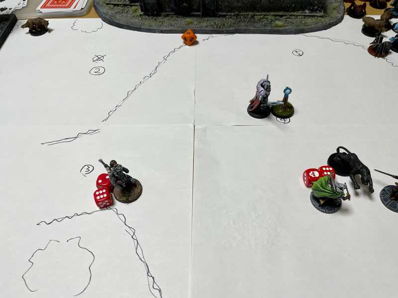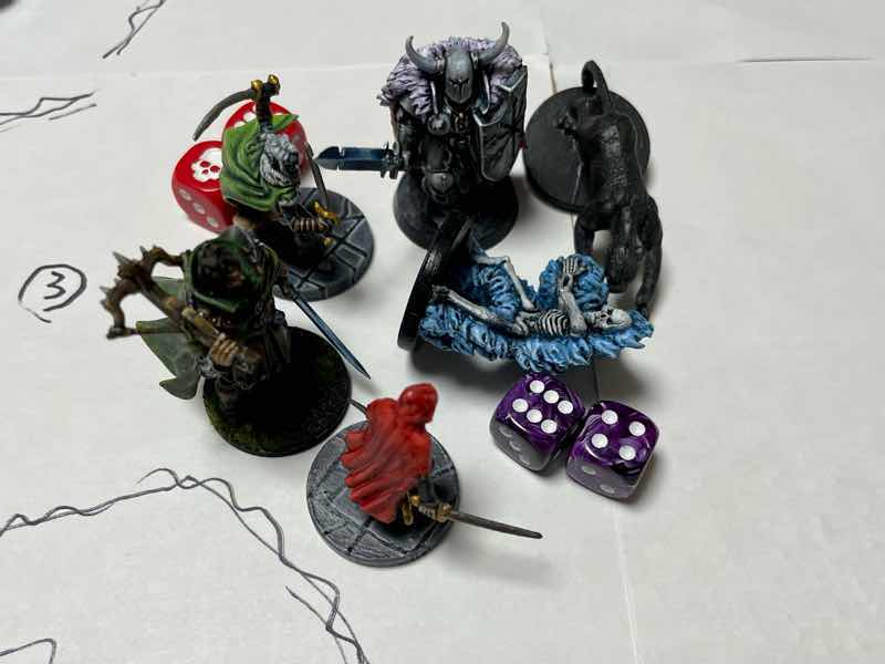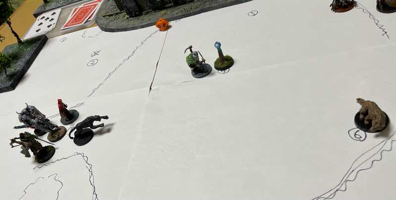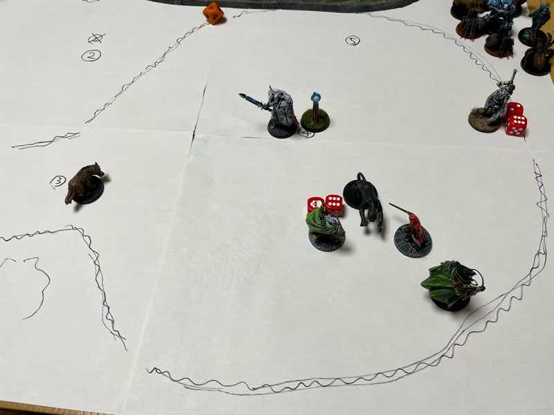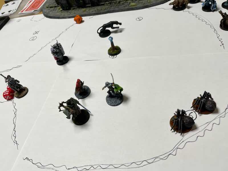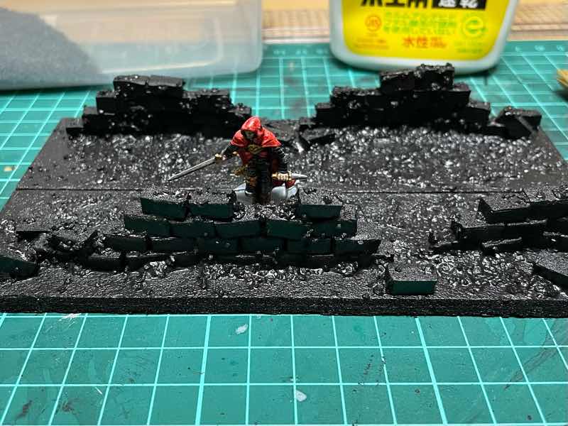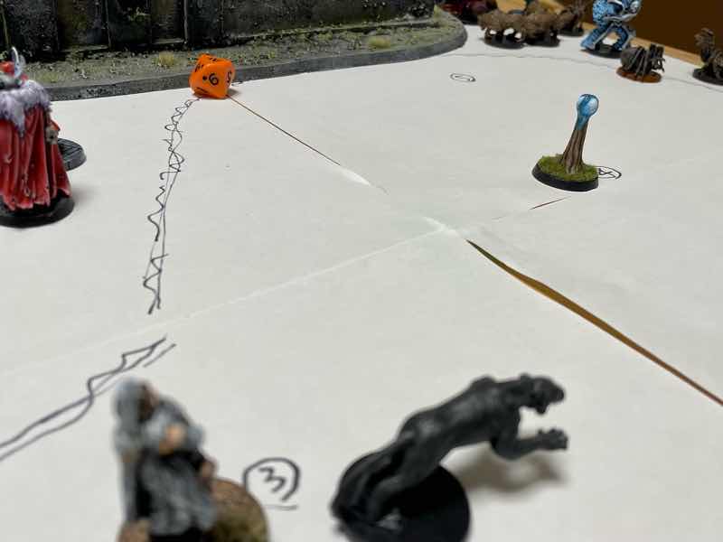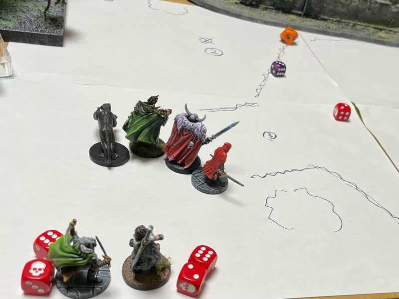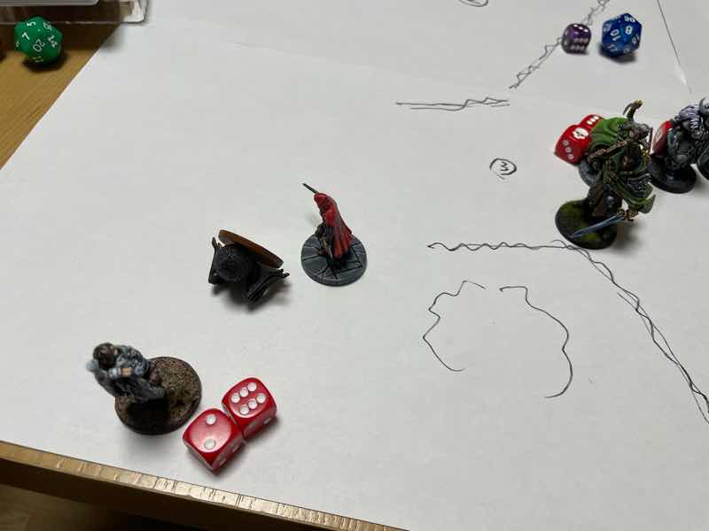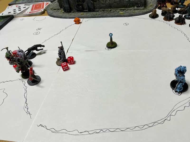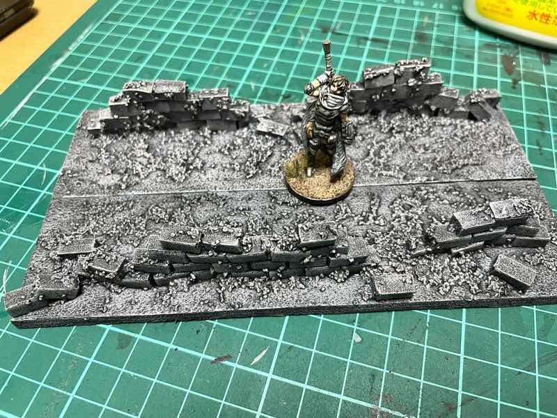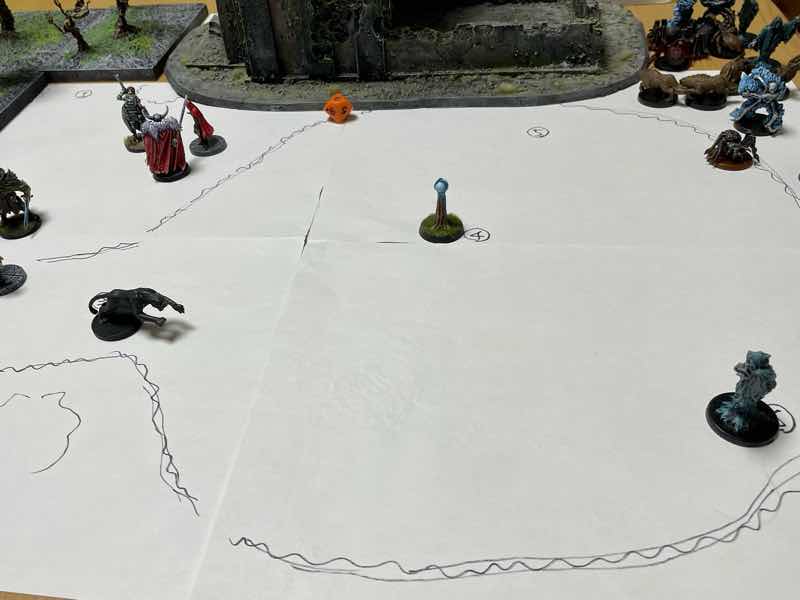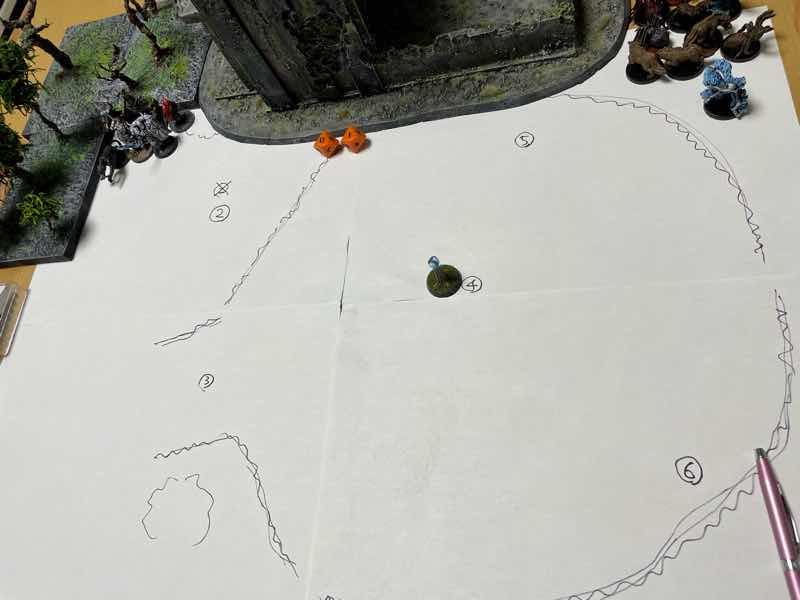 今回はテレインやボードが用意出来なかったので、紙に直接描いて再現。本来はこれで十分なんだけどね。やっぱり情景はこだわりたいから、その内にちゃんとしたのを作製します。