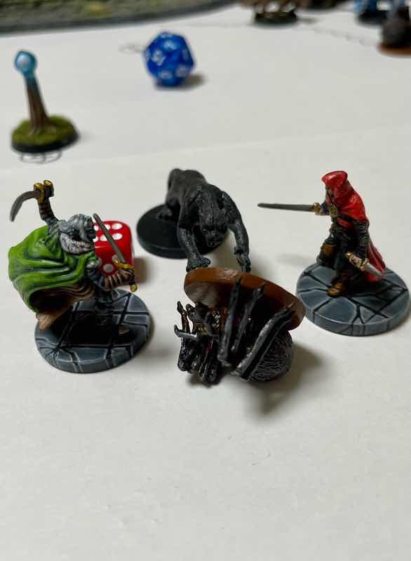ドリッズトは大ダメージを受けるも、後から駆けつけたロクロウとグェンワイバーと協力し、ジャイアントスパイダーを撃破。ミニチュアだけ見ると、夢のタッグバトルですね。