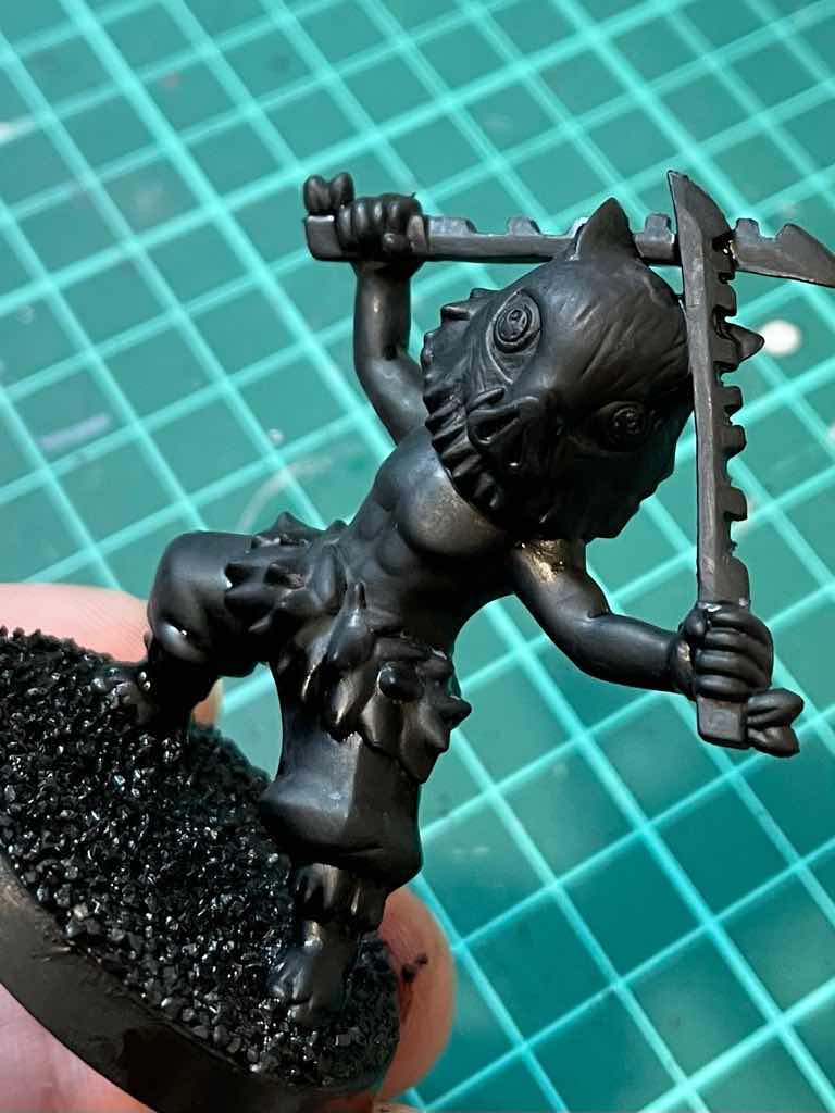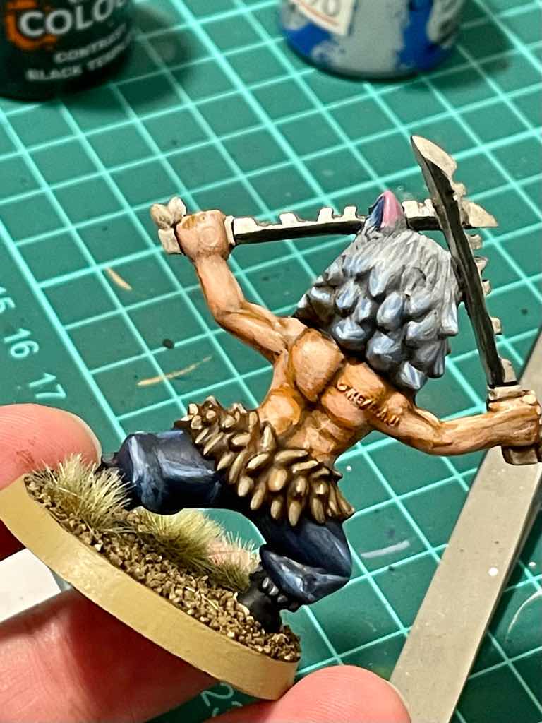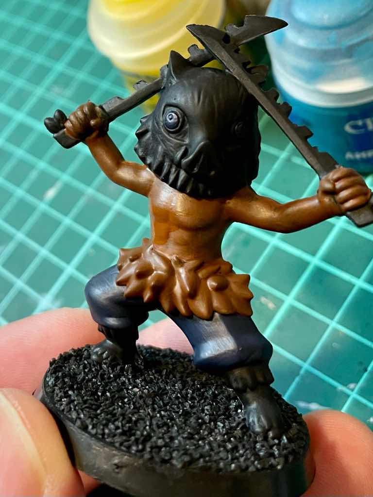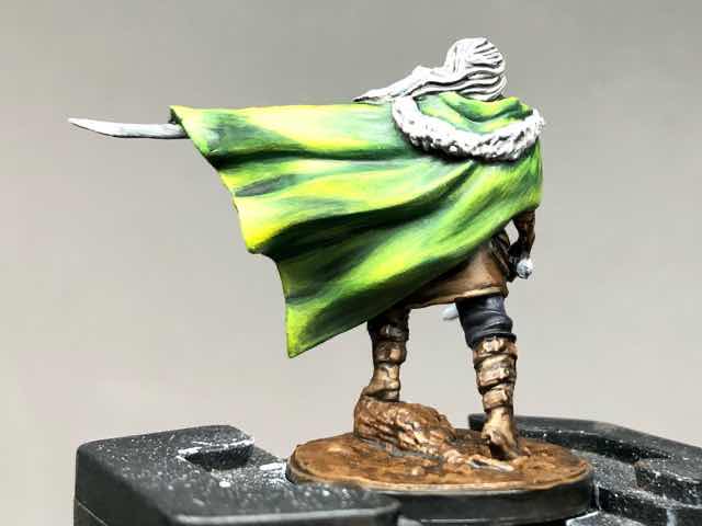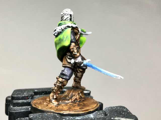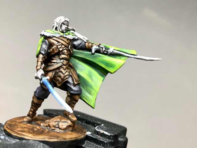 シタデルのコントラストカラー使ったらテッカテカになったので、ラーミアンメディウムで艶を消してから、魔法剣二刀流ドリッズトの1本、光属性の剣「トゥインクル」を光らせる。